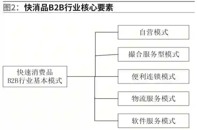 B2B行业平台型企业在运作过程中的运营模式是多元化的,通过对国内多家B2B平台进行研究,发现目前国内快消品B2B行业基本分为以下几种模式,如图2。
