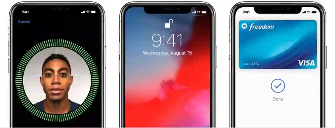 (图2. 使用苹果手机的Face ID进行手机解锁和交易支付)