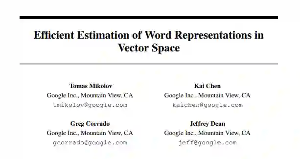 论文链接:https://arxiv.org/pdf/1301.3781.pdf