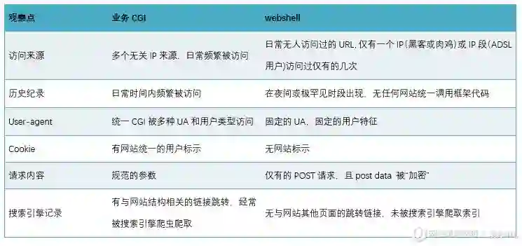 使用机器学习构建基于流量检测模型,重要步骤是对webshell流量进行特征挖掘分析。特征工程要结合webshell的特点和相关的专家知识去挖掘。先根据webshell的行为特点总结了以下几条webshell本身自带的特征。