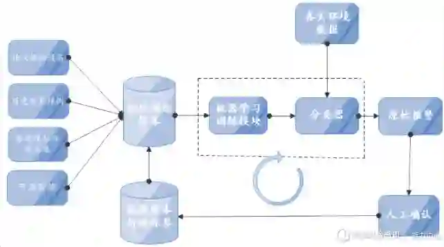 基于机器学习的webshell检测整体业务逻辑如下图6所示,简述如下:首先,从各种终端设备和第三方库中导入数据进行特征提取模型训练;之后,将训练好的模型部署到生产环境中对真实数据做检测,对检出产生告警信息;最后将检出结果做人工确认,并将误报数据重新导入训练库中定期重训练模型。