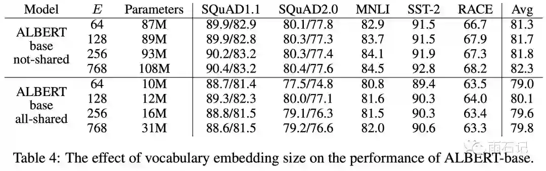 从模型的角度来说,Embedding的参数学习的是上下文无关的表达,而Bert的模型结构则学习的是上下文相关的表达。在之前的研究成果中表明,Bert及其类似的模型的好效果更多的来源于上下文信息的捕捉,因而,embedding占据这么多的参数,会导致最终的参数非常稀疏。
