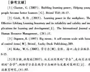 学习力的构成要素中,目前有影响力的观点主要包括:1)“四要素说”。英国布里斯托尔大学克拉克斯顿(Claxton,2007)首先提出学习力构建的四个要素,即通过四种行为表现出来的四种力量“4R”:顺应/顺应力(resilient/resilience)、策应/策应力(resourceful/Resourcefulness)、反省/反省力(Reflective/Reflection)、互惠/互惠力(rcciprccal/Rela/onships)。2)“六要素说”。余建祥基于长期的学习力研究,认为学习力主要包括学习方法、学习动力、时间管理、学习习惯、学习心智、学习意志六个要素,这六个要素互相关联又相对独立,任何一个要素的改善,都会促进学习能力的改善和提升(余建祥,2018)。3)“七要素说”。英国ELLI项目丰富了学习力的构建要素,并在语言表达上做了精确定义,它们分别是:变化和学习(Changing and Leeming)、关键好奇心(CriticalCuriosity)、意义形成(Meaning Making)、创造性(Creativity)、学习互惠(Learning Relation-ships)、策略意识(Strategic Awareness)、顺应力(Resilience),认为七个要素是相互依赖、相互促进的,属于同一事物的不同方面,其中一个或者两个要素获得发展,其他要素及个体的学习力水平亦能获得一定程度的提升。4)“综合体说”。美国哈佛大学柯比(Ki Ay,2005)基于长期的教学实践认为,学习力应该是包括学习动力、学习态度、学习方法、学习效率、创新思维和创造力的综合体,指出学习力还包括兴趣、好奇心和创造等非智力因素。此外,国际经合组织认为,学会学习的能力包括有效管理个人时间,解决各种问题的能力,善于处理不同的程序性事件,评价和吸收新知识,并把新知识及技能应用到家庭、工作、教育等情境的能力(Rychen,2007)。