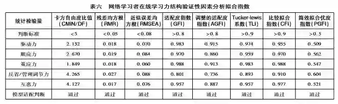 本研究采用项目分析法、探索性因素分析法、验证性因素分析法,对量表各题项的区分度及数据结构进行了严格的筛选和检验,并通过多轮测试、反复迭代,不断修正网络学习者在线学习力模型。以上措施较好地保证了量表的结构效度。