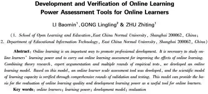 在“互联网+”时代,在线学习是网络学习者适应时代发展、促进专业发展的重要方式。研究网络学习者学习力,开展在线学习力测评,对提升他们的在线学习水平具有重要价值。为了对网络学习者在线学习力发展测评提供科学依据,本研究结合理论研究、专家论证以及实证检验的多轮迭代,构建了网络学习者在线学习力模型,并通过项目分析、探究性因子分析及信效度验证,研制了网络学习者在线学习力测评量表。综合多轮验证与检验,验证基于此模型开发的量表信效度良好,可作为网络学习者在线学习力测评工具,为我国网络学习者在线学习力发展与测评提供依据。
