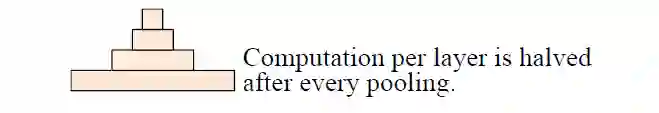 固定了feature map的数量,每当使用一个size=3和stride=2进行maxpooling进行池化时,每个卷积层的计算时间减半(数据大小减半),从而形成一个金字塔。