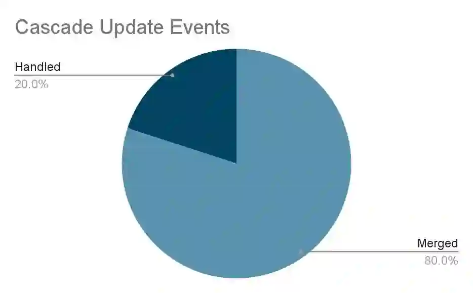 级联更新事件消除了 80% 的重复数据。