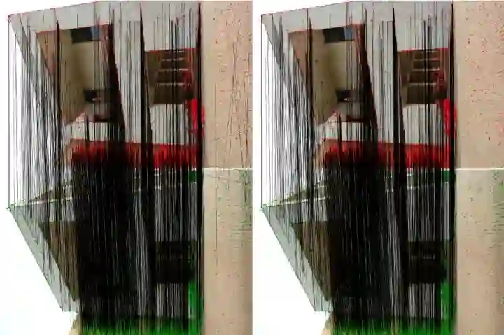 两个Projective Camera之间的点点对应关系是需要满足核线几何的,就像三点可以确定一个平面一样,8对匹配可以确定两个相机的核线几何.