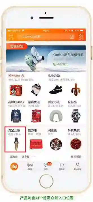 产品淘宝APP首页众筹入口位置推荐