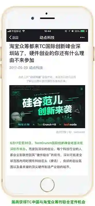 展商获得TC中国与淘宝众筹的联合宣传机会