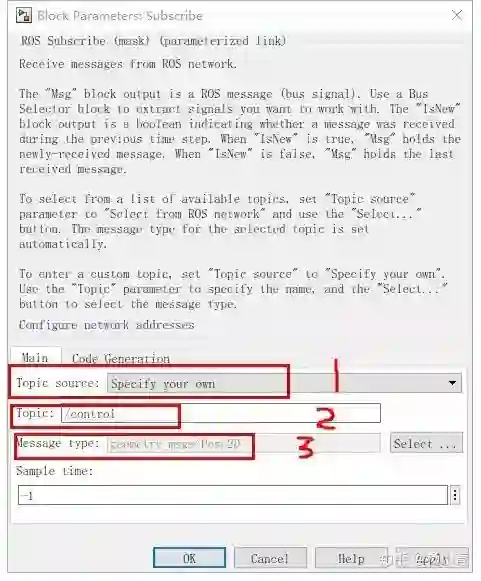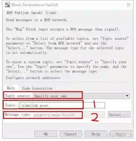 Topic为/simulink_pose,与ROS中的listener节点的话题名字对应 Message的类型与listener节点的消息类型对应