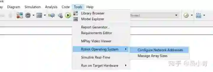 选择Simulink菜单栏中的tools项,如下图所示进入到Configure Network Address项