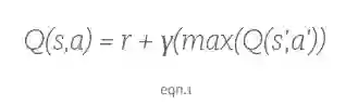 首先我们初始化矩阵(上文所述的 16×5 表格)为零矩阵,然后根据不同动作所获得的奖励更新矩阵的元素。当然,更新该矩阵的方法为计算贝尔曼方程(Bellman Equation):