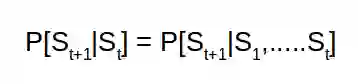 所以在给定状态 St 的情况下求未来状态 St+1 的概率和给定前面所有状态求 St+1 的概率相同。这是因为状态 St 已经将前面所有状态的信息都嵌入了其中。