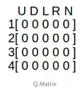 Q 矩阵的初始状态如下(每行代表一个状态,每列代表一个动作):