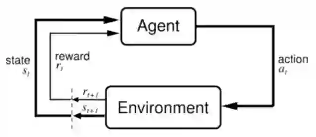 如上图所示,强化学习的思想主要:即训练实体 (Agent) 不断地采取动作 (action), 之后转到下一个状态 (State), 并且获得一个奖励 (reward), 从而进一步更新训练实体。