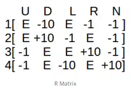 Q(1,D) = R(1,D) + γ*[max(Q(3,U) & Q(3,R))]
