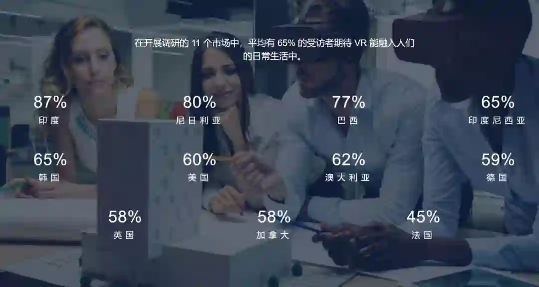 2018 年,Facebook IQ 委托开展了一项全球调研,调研结果显示 VR 有助消除距离的障碍预计到 2020 年,