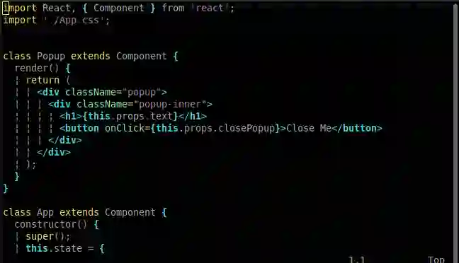 这两个插件可以改进Vim的视觉样式。indentline可以添加竖线来显示缩进级别,vim-jsx-pretty能给JSX代码添加高亮,很适合编写ReactJS等代码时使用。