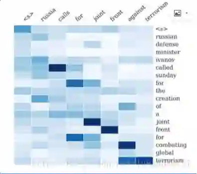 图中行文本代表输出,列文本代表输入,颜色越深表示两个词相关性越强,即生成该词时需要多注意对应的输入词。不同的paper在使用attention上会有不同的技巧,这里不一一赘述了。