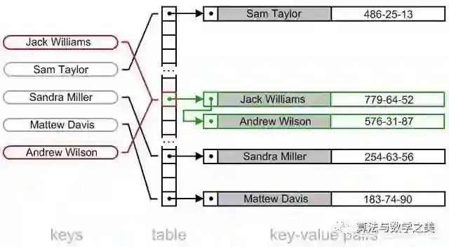 元素存储在哈希表中,可以使用哈希键快速检索它。