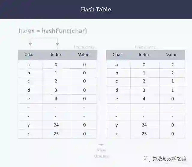在哈希中,通过使用哈希函数将大键转换为小键。 然后将这些值存储在称为哈希表的数据结构中。 哈希的想法是在数组中统一分配条目(键/值对)。 为每个元素分配一个键(转换键)。 通过使用该键,您可以在O(1)时间内访问该元素。 使用密钥,算法会计算一个索引,该索引可以找到或插入条目的位置。