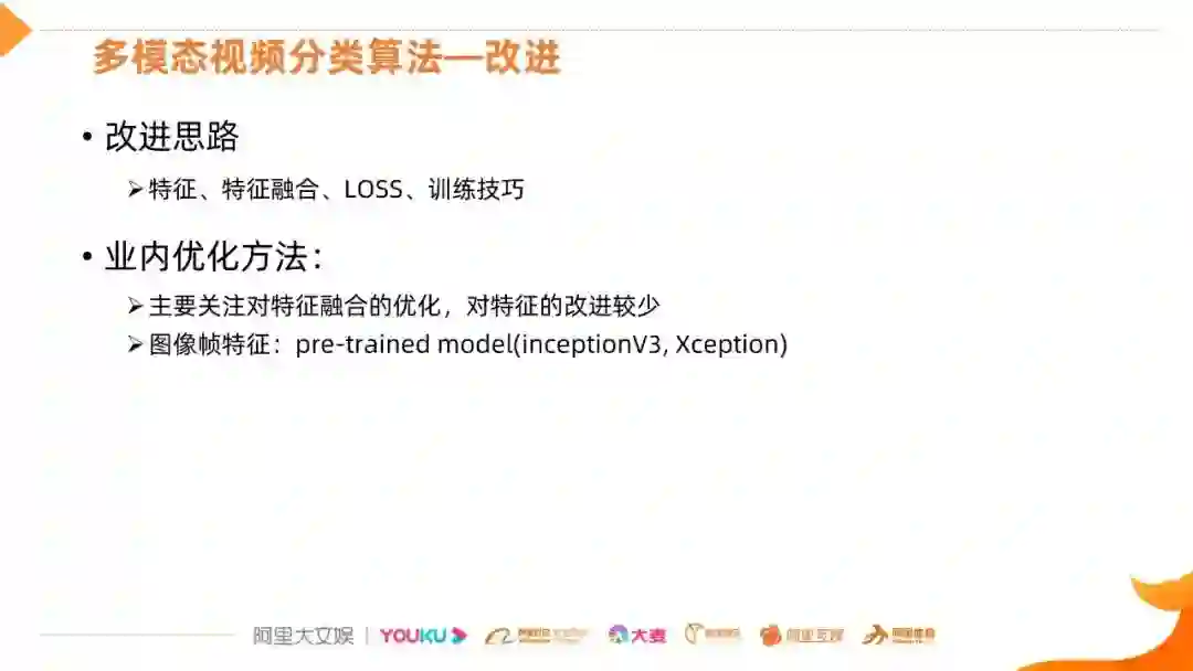 本次直播分享主要是对多模态视频分类算法中图像特征的改进,特征表征能力的提升为分类性能的提升提供了扎实的基础。