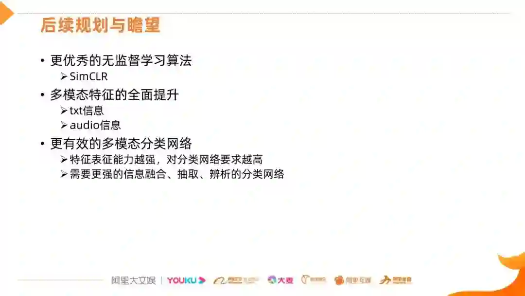 3. 思考及后续计划:新的无监督算法的尝试,文本、音频等基础特征的改进,自动化训练流程的建立