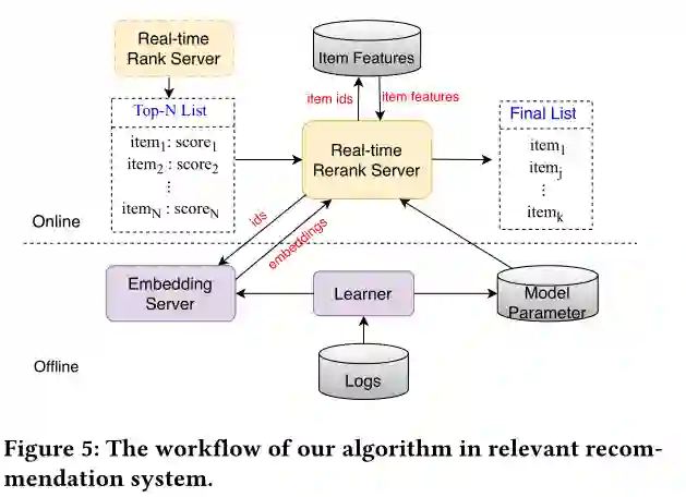 为了进一步验证FDSB的有效性,该模型被部署在在线快手APP的”更多相关视频“功能上以验证整个工作流程。其中,采用视频标签作为特征。具体的工作流程如下图: