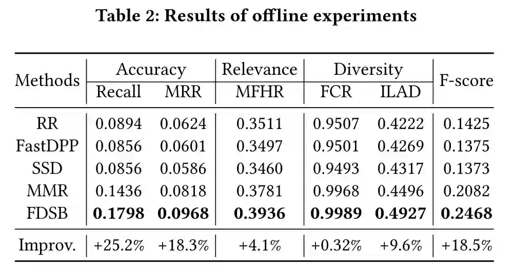快手提出的这款新算法叫FDSB,是一款通用的重排序框架,利用用户物品的偏好得分与用户物品基于不同特征的相关性、多样性得分从而对推荐列表中的物品重排序。