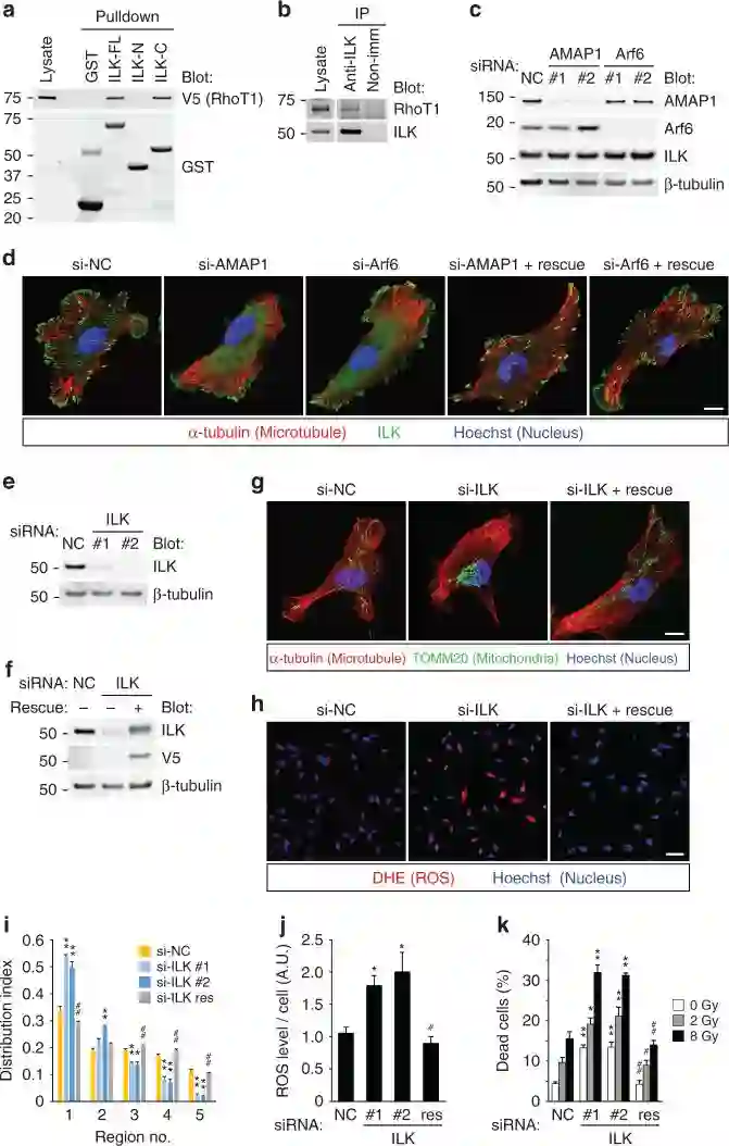 I. 敲除AMAP1、Arf6后,不影响ILK和RhoT1的结合。