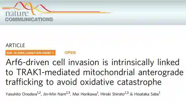 肿瘤细胞在转移和迁移过程中,细胞中的线粒体的亚细胞定位也会发生改变,但是具体机制并不清楚。近日,来自日本北海道大学的研究团队在Nature Communications杂志发现,肿瘤侵袭相关通路Arf6-AMAP1途径促进线粒体的运动和迁移,并抑制了ROS对肿瘤的杀伤作用。该研究结果确定了细胞运动和线粒体动力学之间的新关联方式。