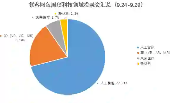 本周硬科技领域投融资事件共31起,其中人工智能领域占比最多,融资事件共20起,另有2起收购事件。3R(VR、AR、MR)领域内有6起融资事件,未来医疗领域2起和新材料领域各有2起和1起投融资事件。