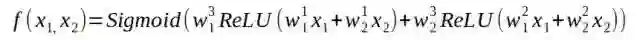最后,我们得到了某种函数,它以几个数作为输入,输出另一个介于 0 到 1 之间的数。实际上,这个函数怎样表达并不重要,重要的是我们通过一些权重将一个非线性函数参数化了,我们可以通过改变这些权重来改变这个非线性函数。