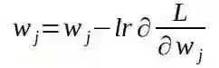 每一个权重值都要减去它对应的导数和学习率的乘积。