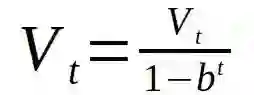 式中 b = beta。当 t 值变大时,b 的 t 次幂与零无法进行区分,因此不会改变 V 值。但是当 t 取值较小时,这个方程会产生较好的结果。但是因为动量的存在使得机器学习过程稳定得很快,因此人们通常会懒得应用这一部分。