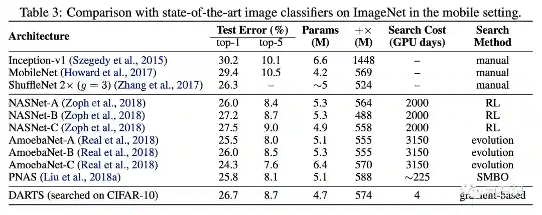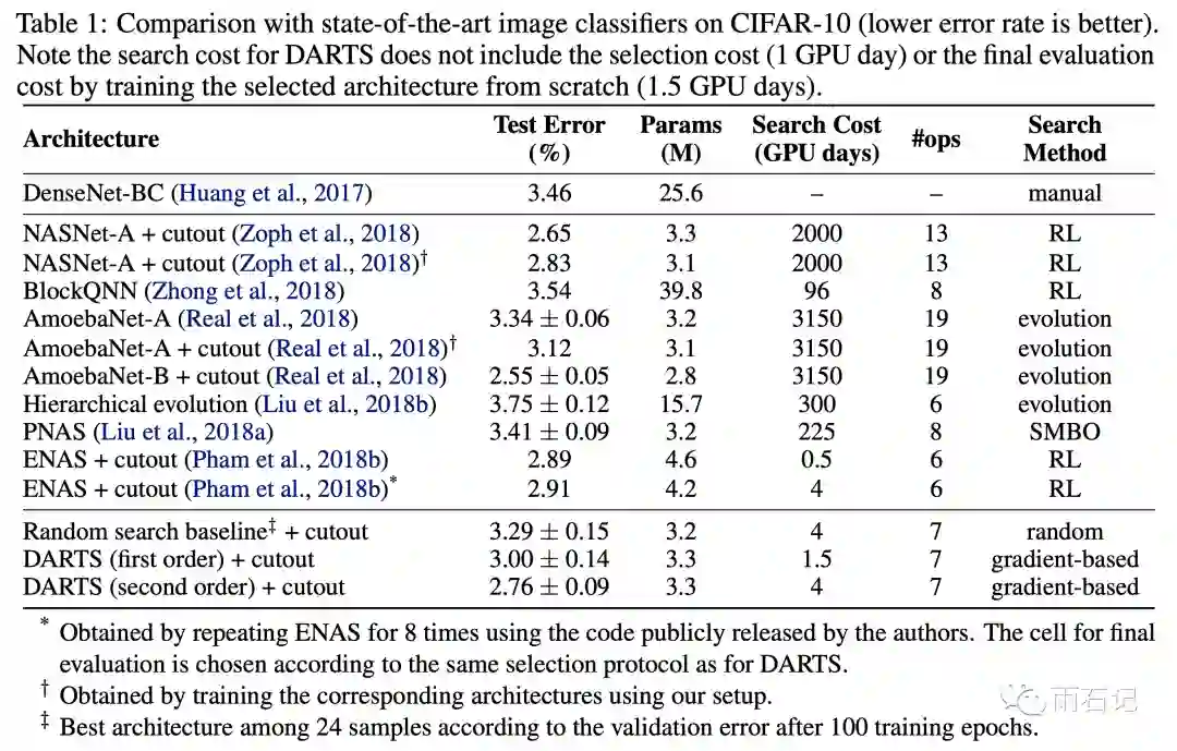 基于遗传算法还有基于RL的算法之所以耗时比较长,是因为在这两种算法中,网络结构跟网络结构对应的参数是两回事,网络结构是离散的,要先确定网络结构,然后再去训练网络结构所对应的参数。因而耗时就长了。