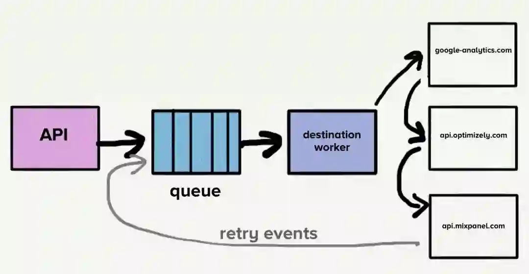 事件是从队列中消耗的,客户的设置会决定这个事件将会发送到哪个目的,这个事件被纷纷发送到每个目的地的API,这很有用。
