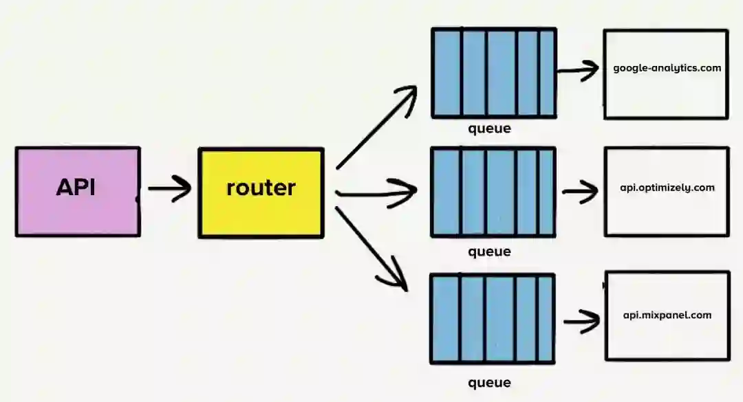这是我们「离心机」的主要灵感来源,「离心机」将替换我们所有的个体队列,并负责将事件发送到一个单体服务。