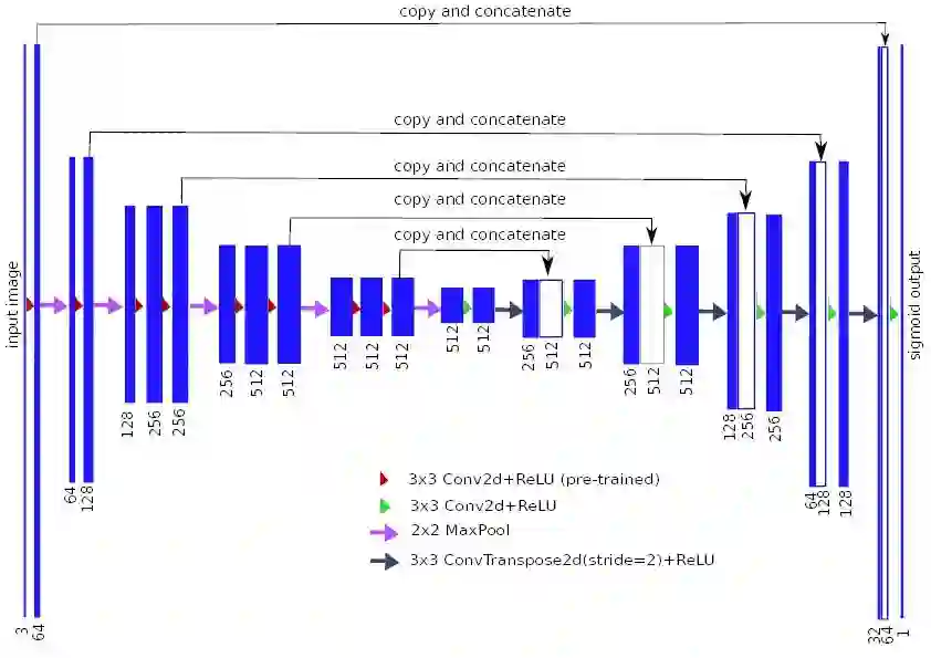 接下来是使用一个训练好的编码器。考虑图像分类的问题,我们试图建立一个图像的特征表示,这样不同的类在该特征空间可以被分开。我们可以(几乎)使用任何CNN,并将其作为一个编码器,从编码器中获取特征,并将其提供给我们的解码器。据我所知,Iglovikov & Shvets 使用了VGG11和resnet34分别为Unet解码器以生成更好的特征和提高其性能。