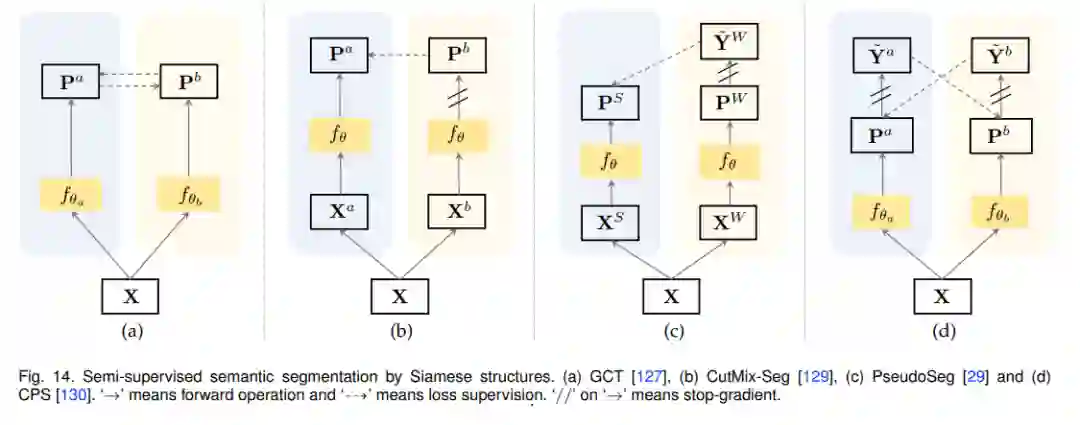 分割是计算机视觉中最古老和最广泛研究的任务之一。它的目标是对给定的图像产生密集的预测,例如,给每个像素分配一个预定义的类标签(语义分割)[1],[2]或将每个像素与一个对象实例(实例分割)[3]关联起来,或两者的组合(全景分割)[4],这使语义相似的像素能够分组成高级有意义的概念,如对象(人、猫、球等)和东西(道路、天空、水等)。近十年来,深度卷积神经网络(deep convolutional neural networks, CNNs)尤其是全卷积网络(fully convolutional networks, FCNs)[20]凭借其强大的密集表示学习能力,在[5]、[6]、[7]、[8]、[9]、[10]、[11]、[12]、[13]、[14]、[15]、[16]、[17]、[18]、[19]上取得了巨大的成功。然而,这些基于深度学习的分割方法在密集的标签中蓬勃发展,即像素级标注,获取成本高且费力。
