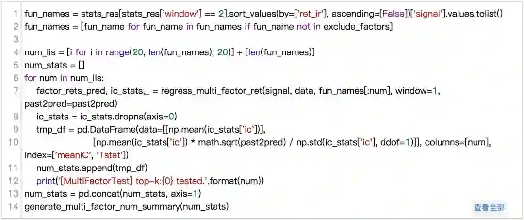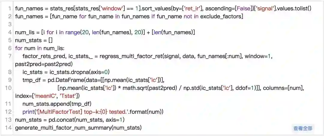 按单因子IC排序由高到低,判断新加因子是否会导致解释能力变强。研报中结果是随着因子数目增加,模型预测能力依旧可以进一步提高。实验结果: