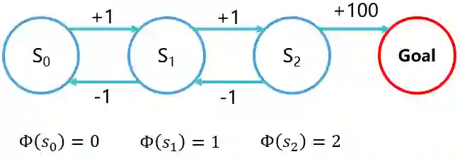 这相当于给每个状态一个势能,从势能低的地方到势能高的地方给正奖励,而从势能高的地方回势能低的地方给负奖励,这样就避免了之前的 到