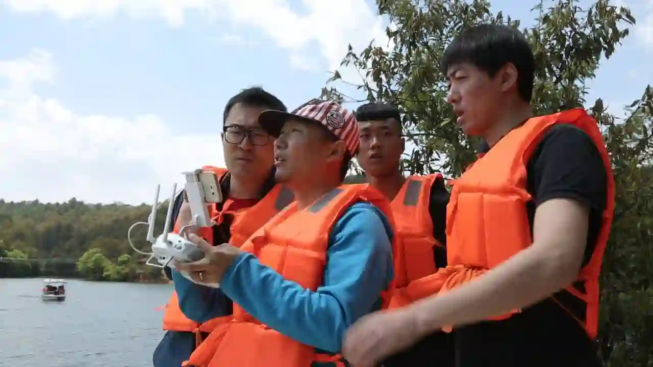 “当时我要操控‘悟’ 1 Pro在丛林中的一块空地起飞,从树与树间隔的缝隙中飞出去拍摄。一块电池来回拍了四条片子,我们都对效果挺满意”,卢凯拍完后让演员和工作人员都撤到身后,开始把无人机从树缝中飞回来,“这种动作难度很高,我边紧盯着无人机边倒退挪步……”
