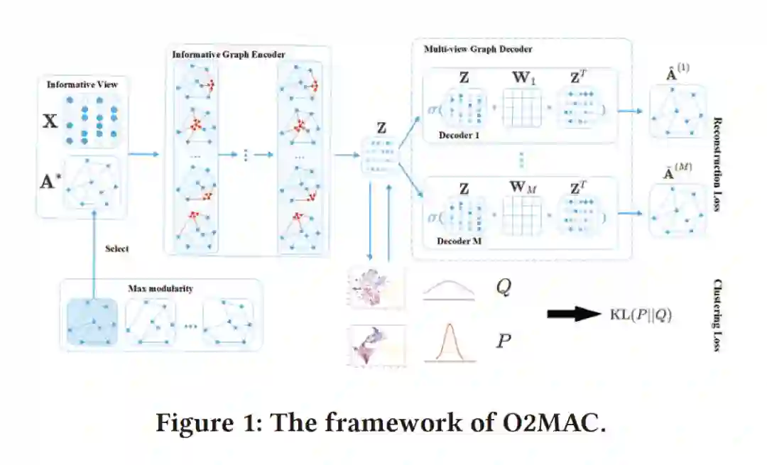 摘要:多视图图聚类(Multi-view graph clustering)近年来受到了相当大的关注,它是一种寻找具有多个视图的图的分割方法,通常提供更全面但更复杂的信息。虽然多视图图聚类已经做了一些努力并取得了较好的效果,但大多数都是采用浅层模型来处理多视图间的复杂关系,这可能会严重限制多视图的图信息建模能力。本文首次尝试将深度学习技术应用于属性多视图图聚类,提出了一种新的任务导向的One2Multi图自编码器聚类框架。One2Multi图自编码器能够通过使用一个信息丰富的图形视图和内容数据来重建多个图形视图来学习节点嵌入。因此,可以很好地捕捉多个图的共享特征表示。在此基础上,我们还提出了一种自训练聚类目标,以迭代地改善聚类结果。通过将自训练和自编码器重构集成到一个统一的框架中,我们的模型可以联合优化适用于图聚类的簇标签分配和嵌入。在真实属性多视图图数据集上的实验很好地验证了该模型的有效性。