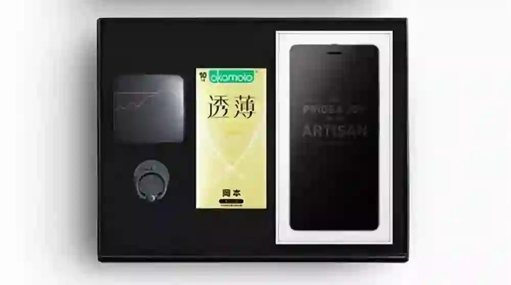 冈本粉罗永浩没有错过任何造势机会,锤子和冈本联名出过一款套装,打开黑色礼盒,一边放着避孕套,一边放着坚果Pro手机,老罗大赞手机的「超长续航」的功能。