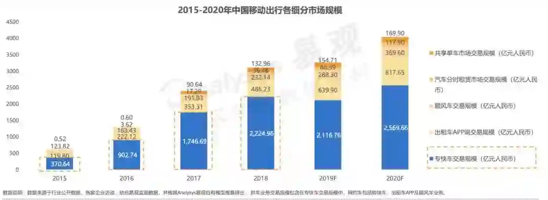 据易观《2019中国网约车市场分析报告》显示,2018年顺风车交易额为232亿,相较2017年的192亿,涨幅为20.8%,而预计顺风车的交易额在2019年、2020年分别为288亿和370亿,增长迅速。