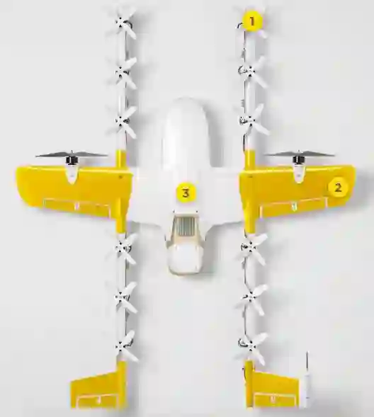 该款外形奇特的无人机通过悬停螺旋桨降低噪音。具体到基本递送方式,其实并没有太大改变。在用户从商家订购商品(食物、饮料、非处方药物或其他物品),Wing软件收到订单信息并提取到货物后,Wing软件会自动计算从配送点到收货点的路线,并将飞行计划上传到无人机控制平台;在配送货物时,无人机会在配送点上方进入悬停状态并下降至距地面7米的高度,通过绳索将包裹释放到地面,从而完成配送。