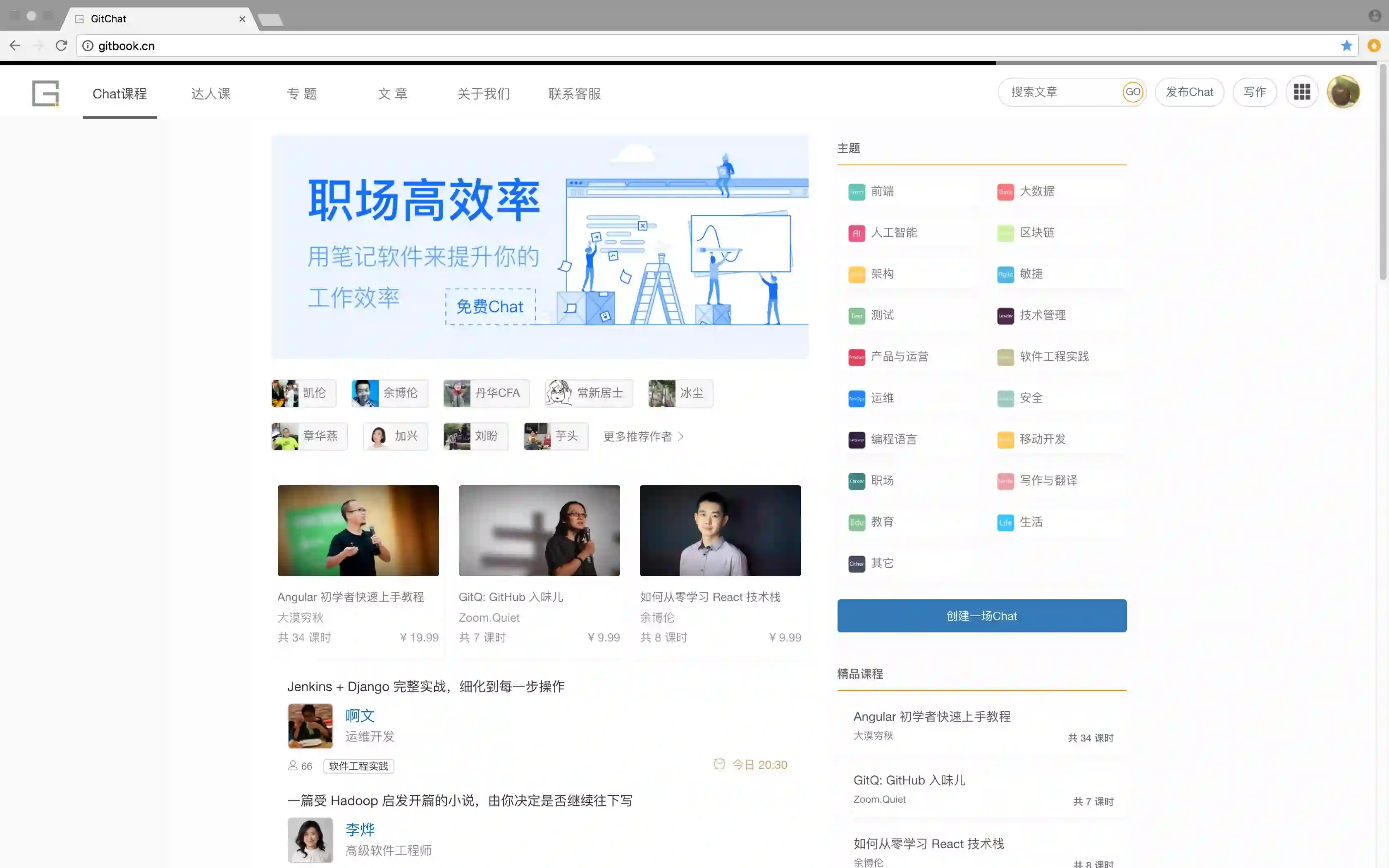 考虑到 GitChat 用户在PC端使用时长较高的特点,我们在 PC 端产品(GitBook.cn)进行了内容同步。