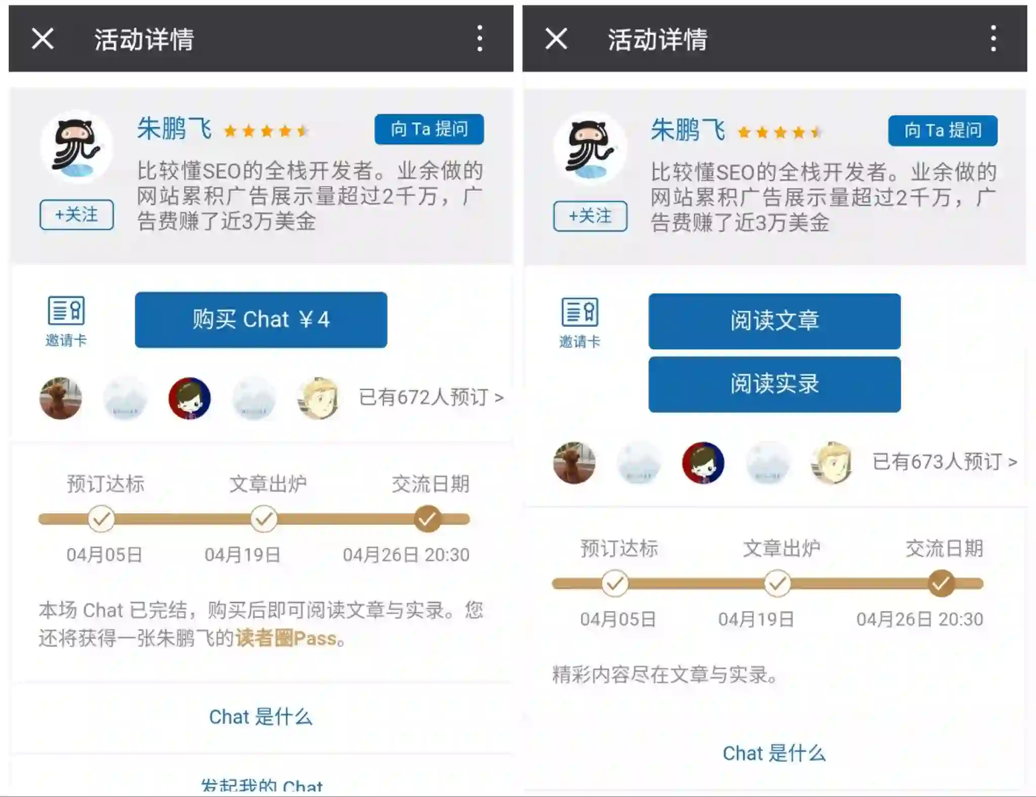 从现在起,每一场 Chat 结束后,我们都会以不高于 Chat 原定价 50% 的价格来为用户提供文章和实录的阅读服务。